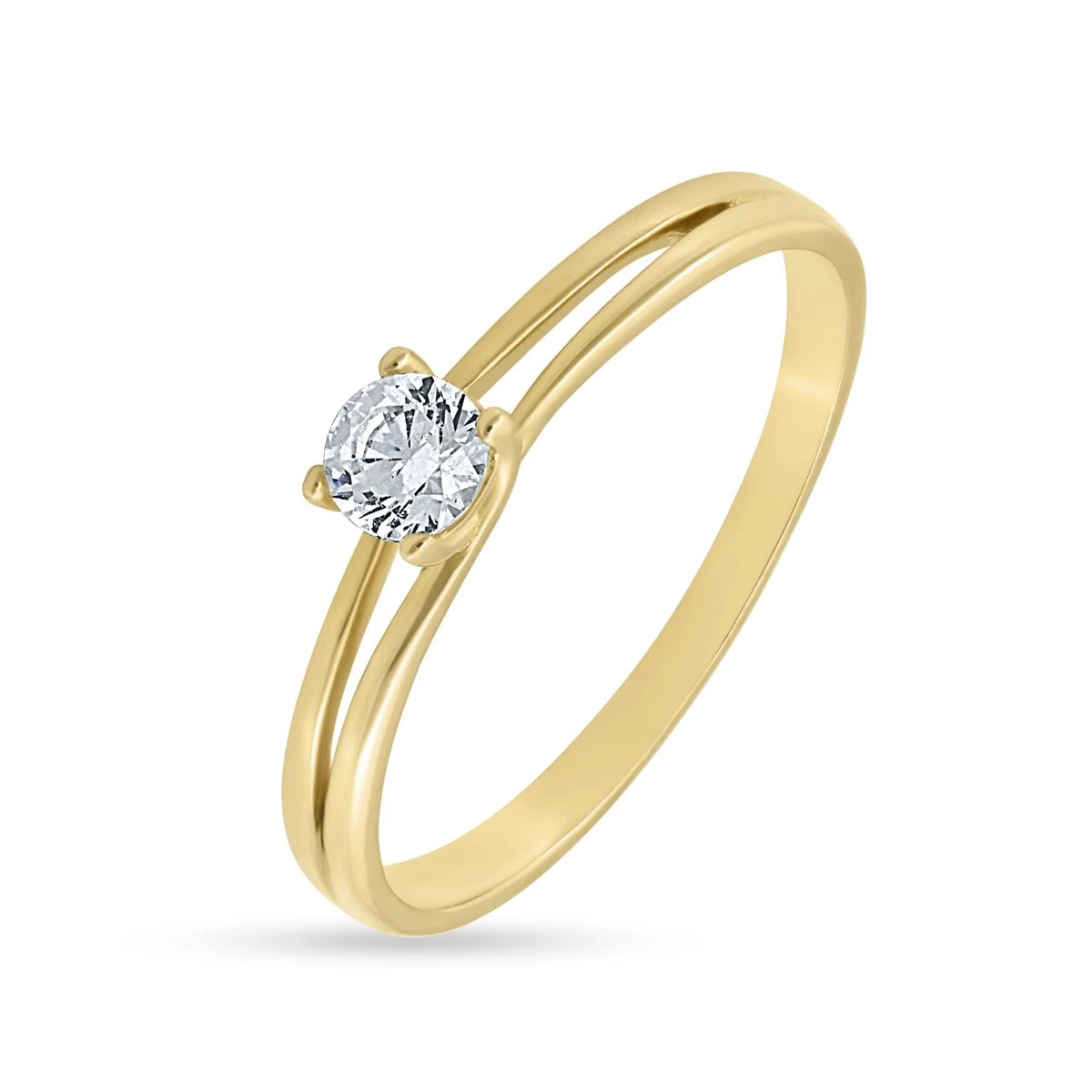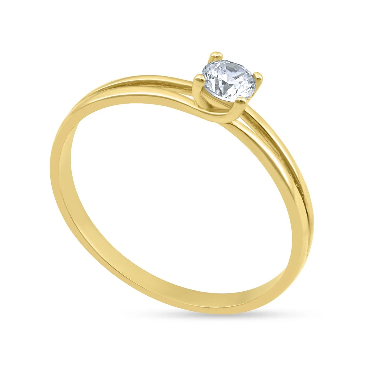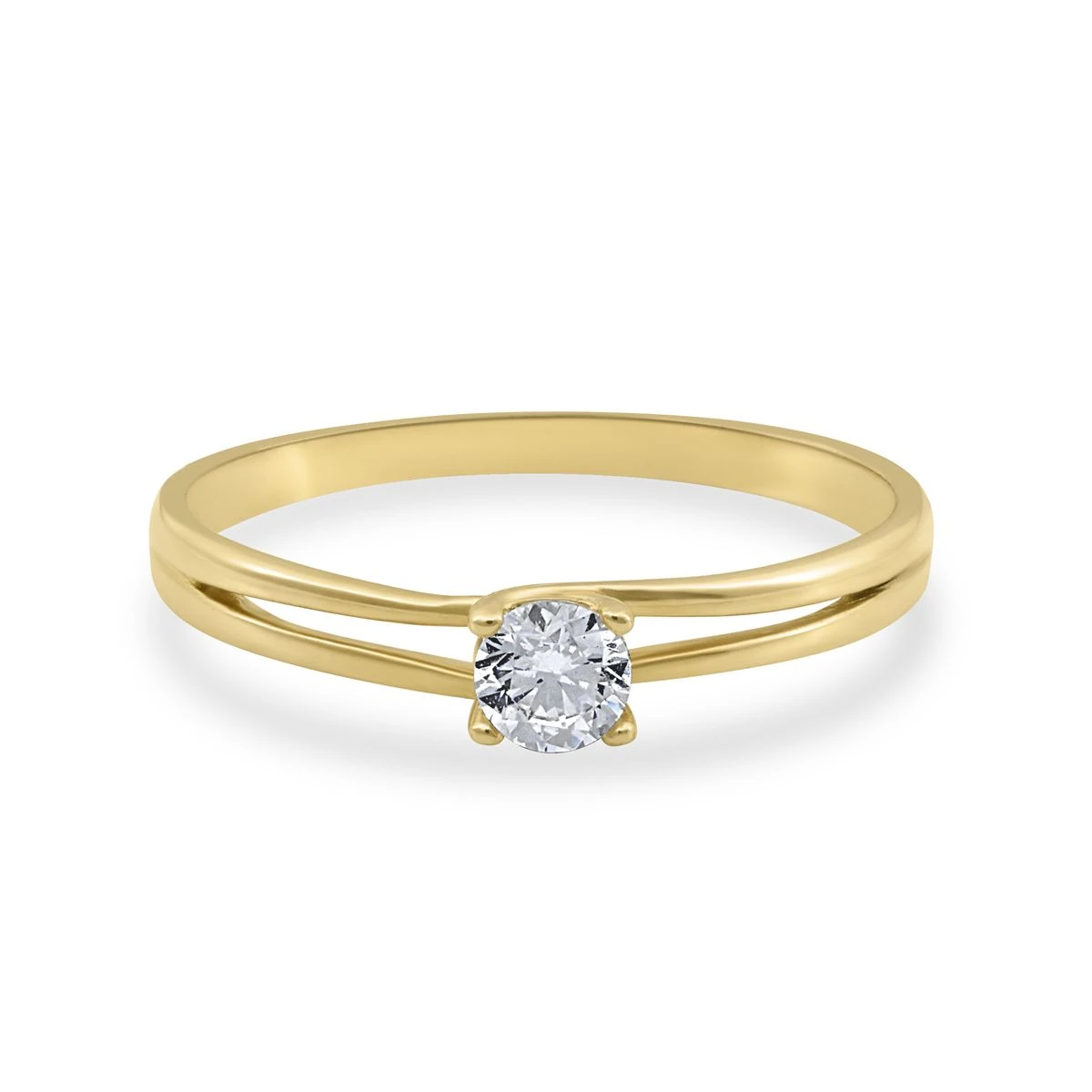 Inel logodna din Aur Galben de 14k cu piatra Zirconia artificial de culoare ALB