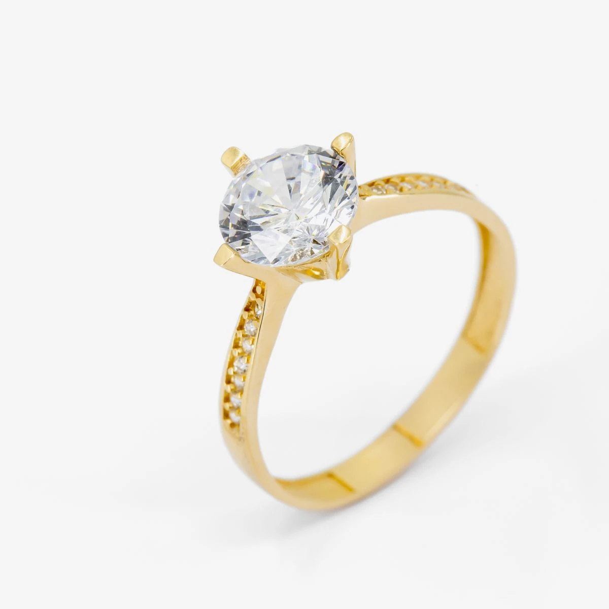 Inel logodna din Aur Galben de 14k cu piatra Zirconia artificial de culoare ALB